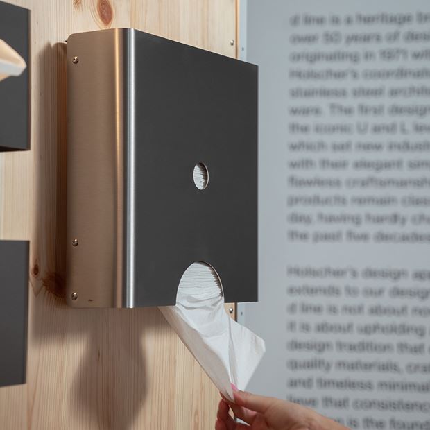 La série de distributeurs d line, initialement conçue par Knud Holscher dans les années 1970, a été réinterprétée et mise à jour en étroite collaboration avec Holscher Design.