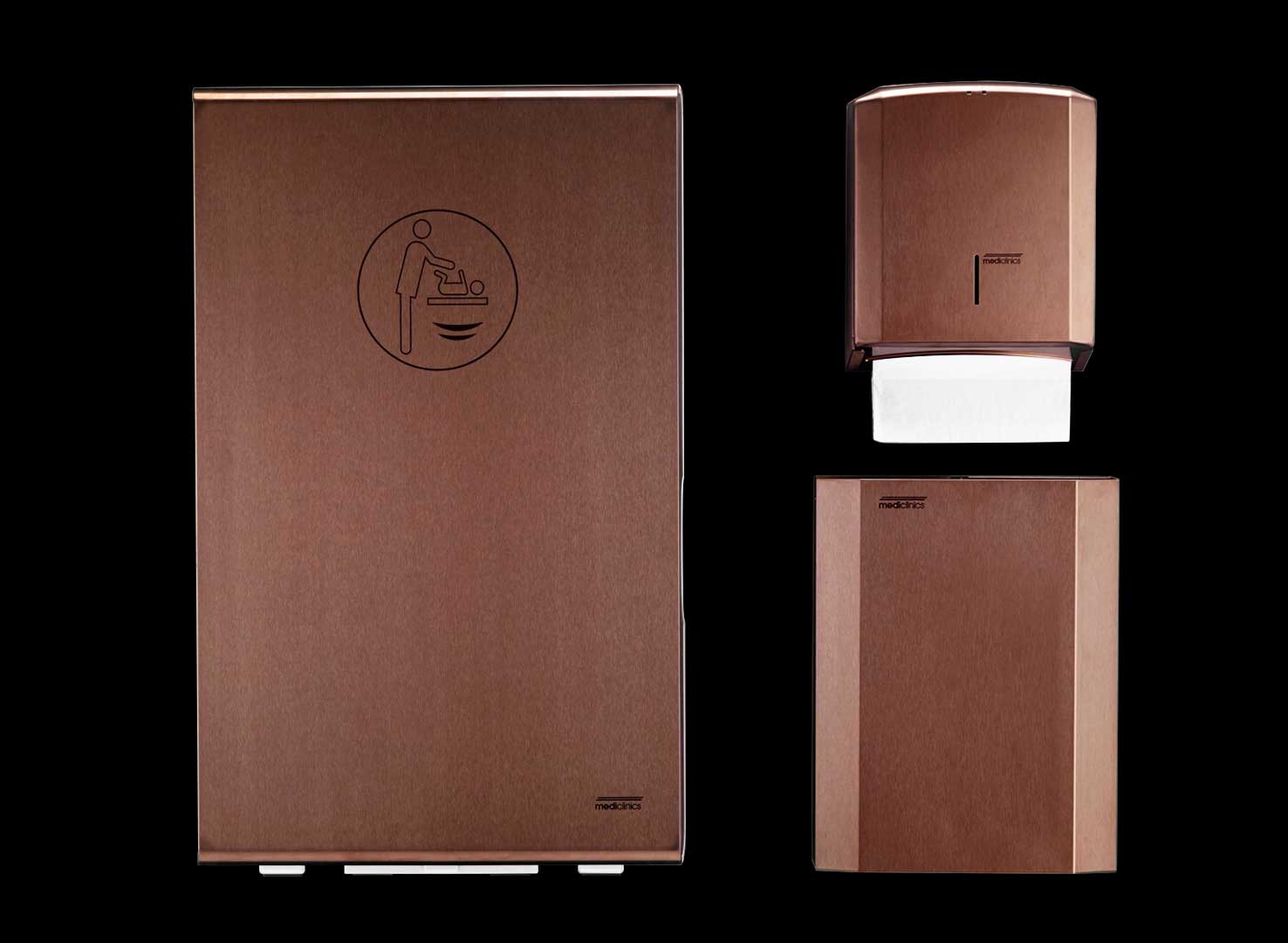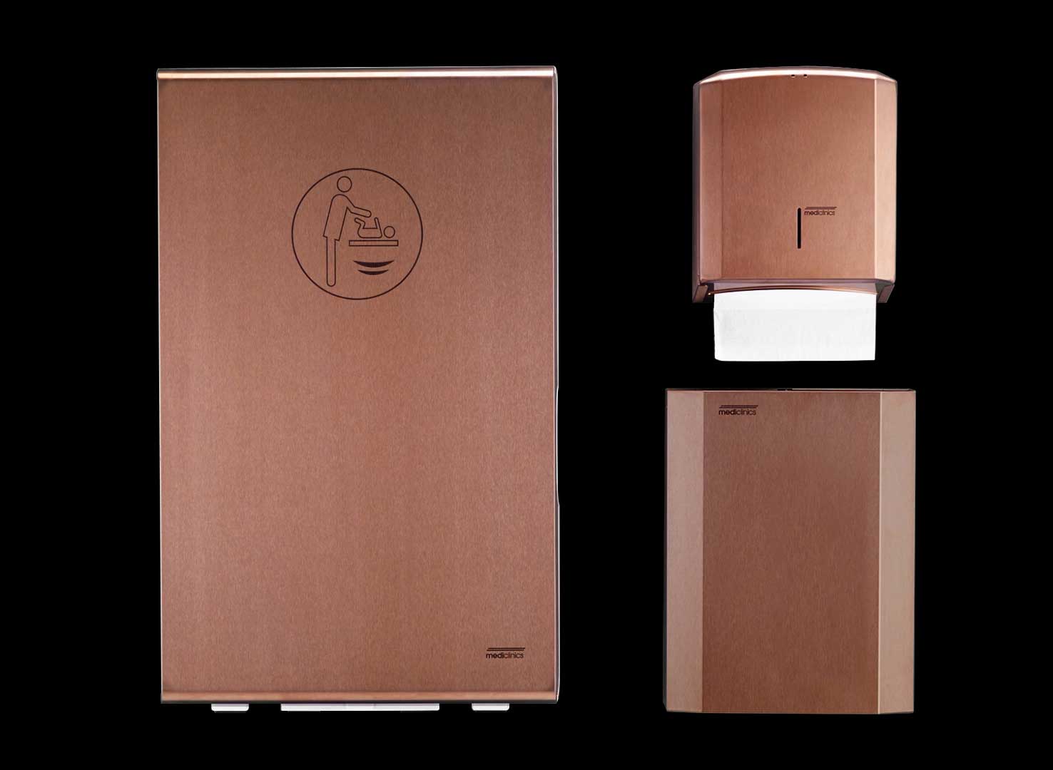 Les nouvelles finitions PVD sont disponibles pour une variété de produits clés de Mediclinics, y compris les sèche-mains, les distributeurs de savon et d’autres accessoires essentiels pour les toilettes. Cette gamme offre un choix de couleurs et de tons sophistiqués, notamment l’or, le cuivre, le bronze et l’anthracite, ce qui permet aux concepteurs et aux gestionnaires d’établissements d’obtenir un aspect cohérent et haut de gamme. Les finitions élégantes rendent les produits idéaux pour les hôtels de luxe, les restaurants haut de gamme et les immeubles de bureaux modernes où la fonctionnalité et l’esthétique sont primordiales.